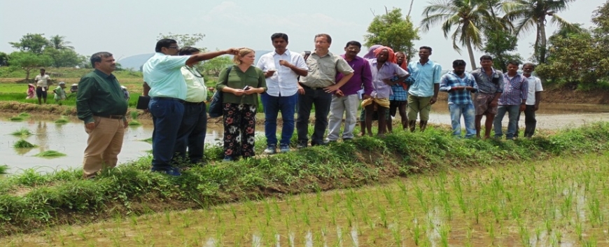 The Project Coordinator Dr. Sekhar Nagothu, Dr. Per Stålnacke and Berit Nordskog from NIBIO, Norway accompanied by other team members Dr. Roul, Director Extension and Dr.Prasannajit Mishra from OUAT, Dr. A.K. Nayak and team from NRRI, Dr.Rajkumar and team from MSSRF, and SAC members visited the project sites in Ganjam and Cuttack on the 19th and 20th August to get an exposure of the project activities and interact with farmers and women groups at the VKC in Chikrada village of Ganjam district.
