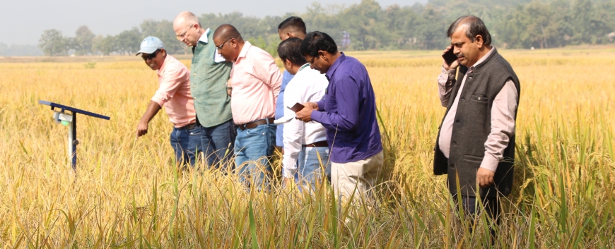 His Excellency Ambassador of Norway to India, Royal Norwegian Embassy Mr. Hans Jacob Frydenlund visited to the Resilience project site in Cuttack, Odisha during 27th and 28th November 2022 with his team Ms. Marit Marie Strand, Counsellor – Head of Cooperation Climate, Energy, Health, Higher Education and Mr. Johan Thomas Bjerkem, Second Secretary. They arrived at ICAR-NRRI on 27th November. Dr. A.K.Nayak, NRRI welcomed. The RESILIENCE project partners. Dr Prasanjit Mishra, Dean (Extension Education), OUAT, Dr. R Rajkumar, Principal Scientist, MSSRF, Mr. Ashfaq Ahmed Bhat Director, Norway India Partnership Initiative (NIPI) New Delhi participated in the meeting. The meeting started with brief introduction and history of NRRI by ICAR-NRRI Director, Dr. A. K. Nayak, after that Dr. Rahul Tripathi briefly explained about the progress and achievements of the ongoing RESILIENCE project being implemented at different project sites i.e. Tangi and Niali block of Cuttack district. He explained about different climate smart agricultural practices such as Wet Direct Seeded Rice (WDSR), Dry Direct Seeded Rice (D-DSR), Mechanical transplanting, System of rice intensification (SRI) which resulted in yield enhancement by 23-37%. He also gave a demonstration of android based mobile app “rice N xpert”. Dr. R Rajkumar, MSSRF briefed the guests about the Village Knowledge Centres established at Cuttack and Ganjam districts under RESILIENCE project and the benefit farmers are deriving from village knowledge centers.