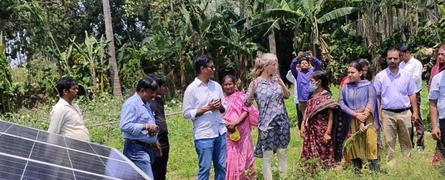 OUAT and KVKs have successfully promoted capacity building for farmers with the support of the project partners. Farmers, OUAT and KVK scientists have demonstrated solar interventions including solar pump sets, solar insect light traps, solar sprayers, solar jhatka machines for wild animal control, and mulching in vegetables during the visit of the Norway embassy delegates Beate Langest, Counsellor, Suresh Mathavan, Advisor, Dr. Udaya Sekhar Nagothu, Project Coordinator, and Katrine, Communication Officer, to the project site on March 29th, 2023. The team appreciated the interventions and suggested taking efforts to sustain and upscale with the support of government departments.